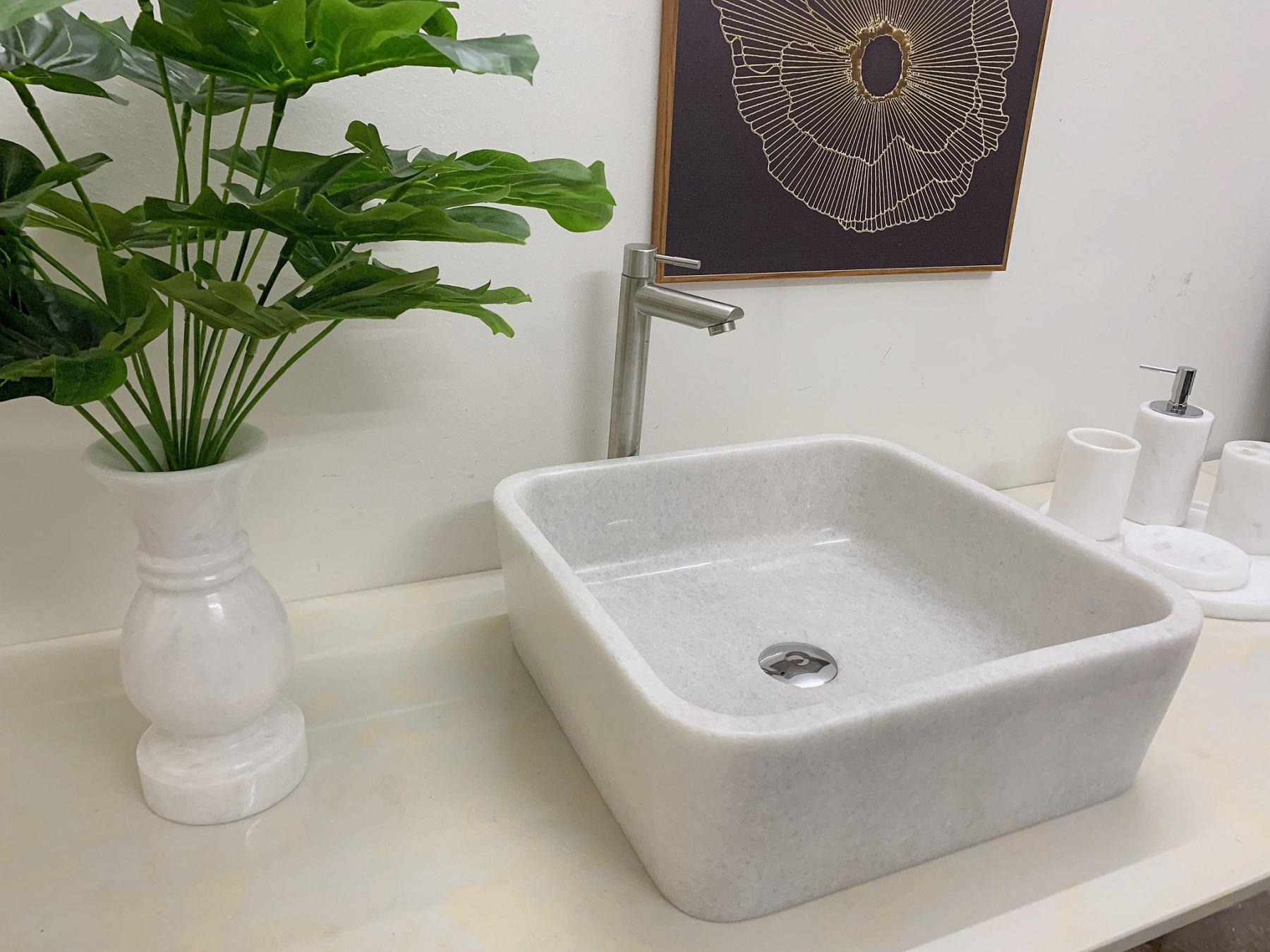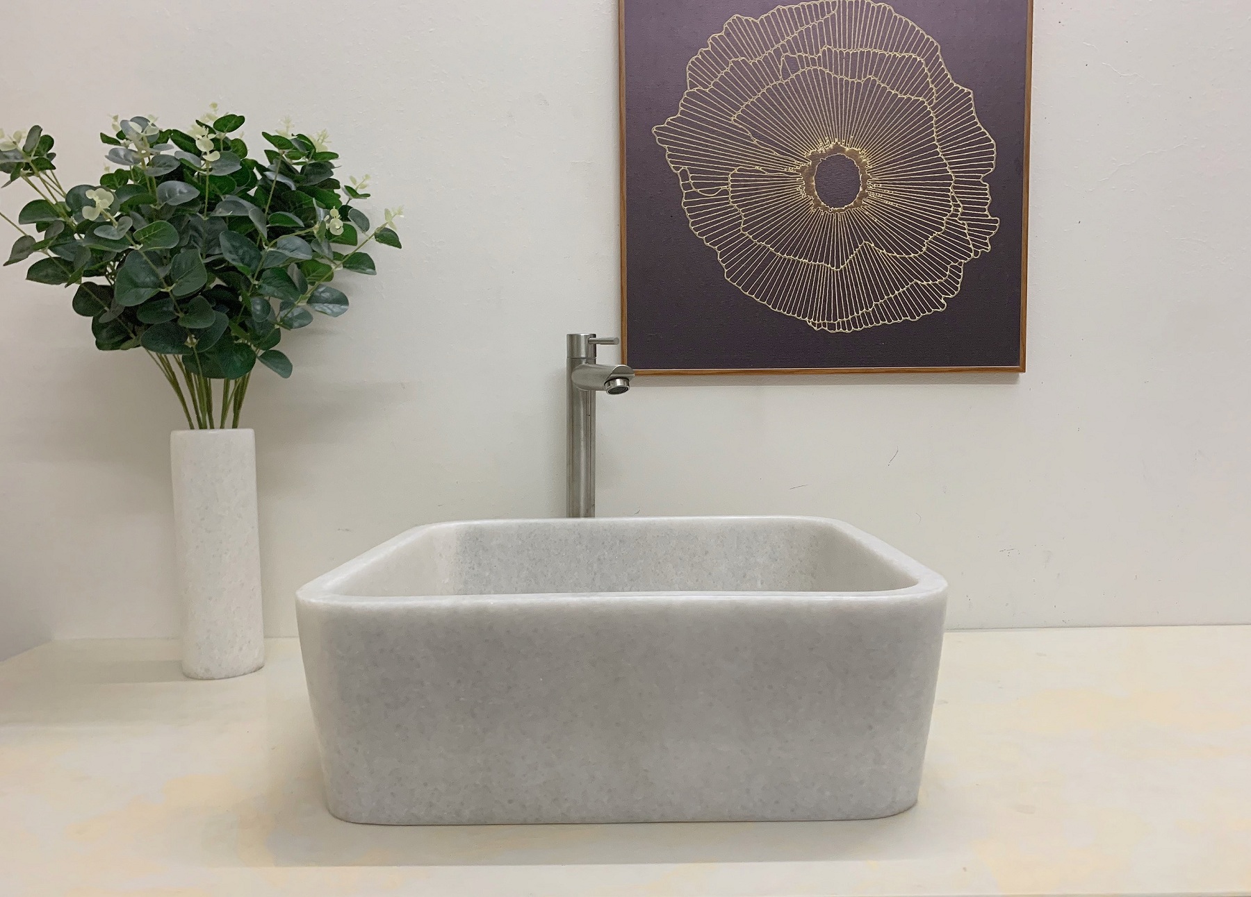 NATURAL STONE BATHROOM BASIN - WHITE MARBLE - BST46