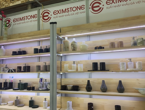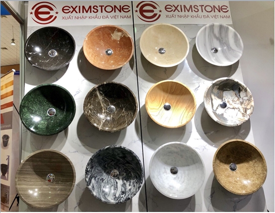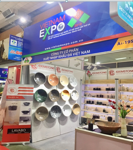 Hội chợ quốc tế thương mại Vietnam Expo 2019 là cơ hội mới cho Eximstone giới thiệu cho khách hàng những sản phẩm mà chúng tôi tâm huyết, và đã cố gắng sản xuất ra được trong thời gian qua. Gian hàng của Eximstone tập trung chủ yếu giới thiệu tới quý khách hàng các sản phẩm làm từ đá tự nhiên như chậu rửa mặt lavabo đá, set phụ kiện phòng tắm, cũng như các sản phẩm mỹ nghệ mà chúng tôi đã sản xuất được tại nhà máy tại Hòa Bình. Nhờ sở hữu ba mỏ đá tự nhiên: đen, hồng, nâu Eximstone sản xuất ra được dòng sản phấm chậu rửa mặt lavabo đá tự nhiên. Một số hình ảnh tại gian hàng triển lãm :