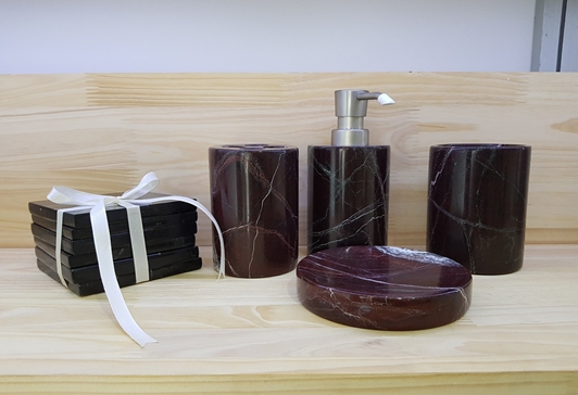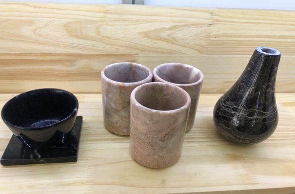 Các sản phẩm hoàn toàn được sản xuất từ đá tự nhiên như bình hoa, set phụ kiện phòng tắm, set bát đũa.