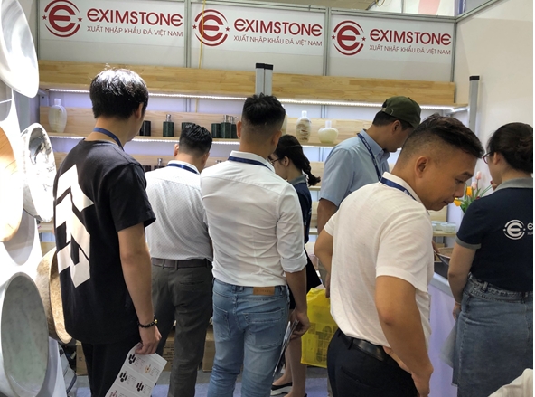 Khách hàng tới tham quan gian hàng của Eximstone