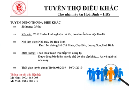 EXIMSTONE TUYỂN DỤNG THỢ ĐIÊU KHẮC TẠI NHÀ MÁY HÒA BÌNH