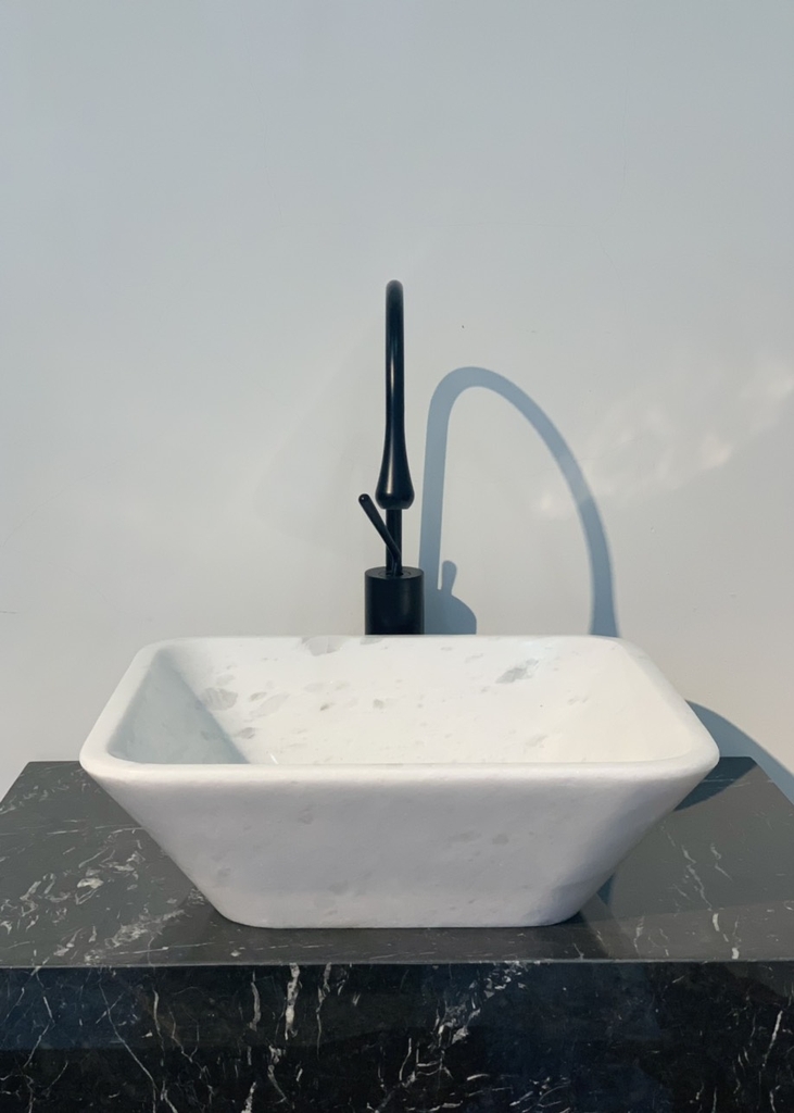 NATURAL STONE BATHROOM BASIN - CRYSTAL WHITE - LVV01