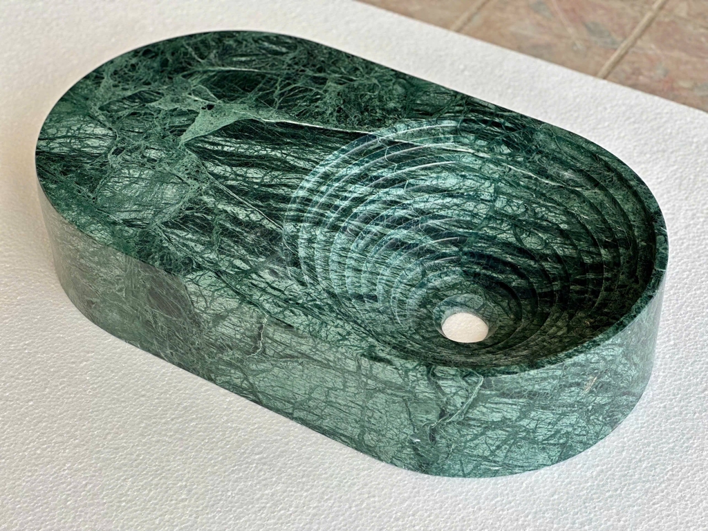NATURAL STONE BATHROOM BASIN - OVAL CARVED