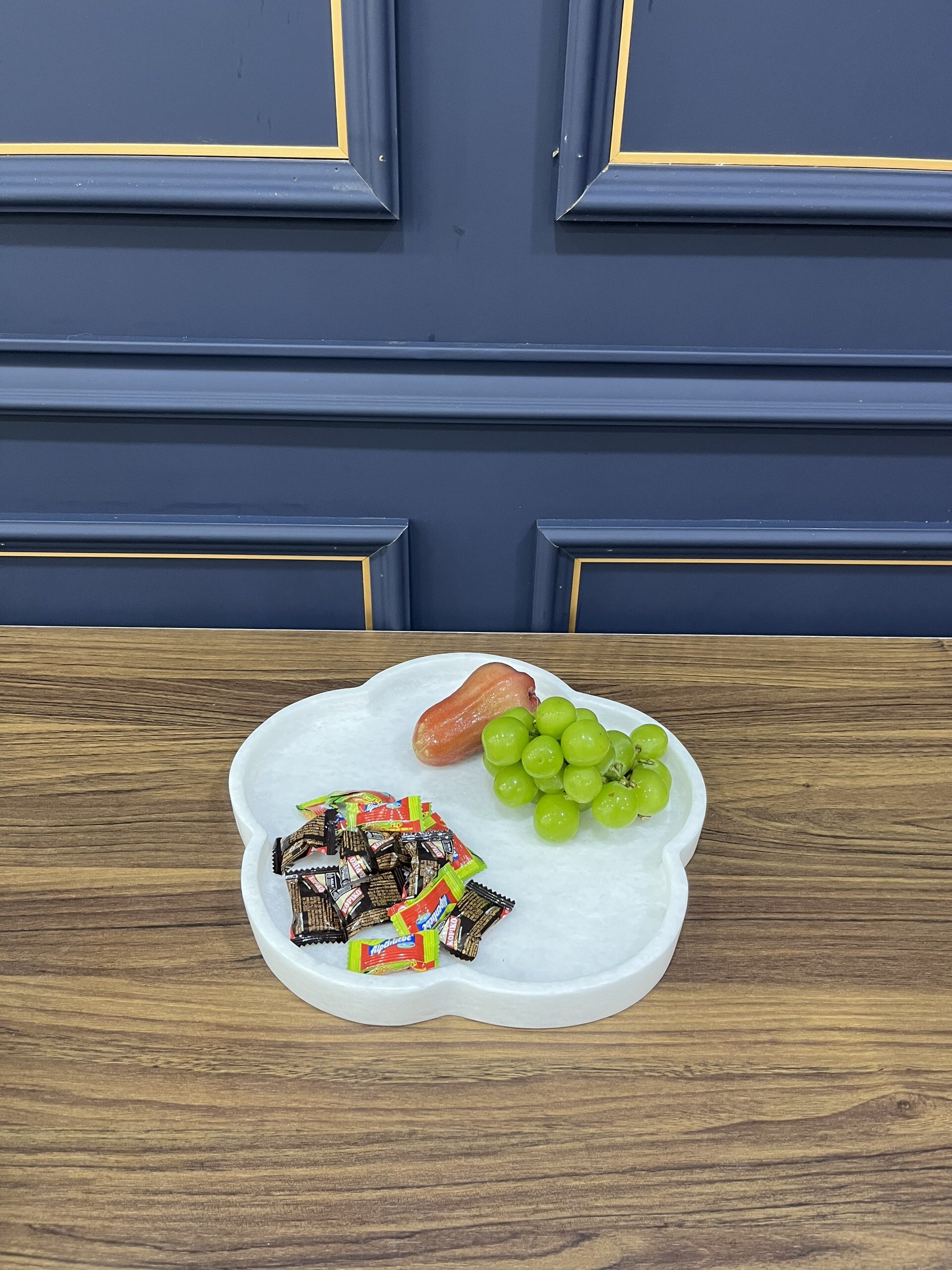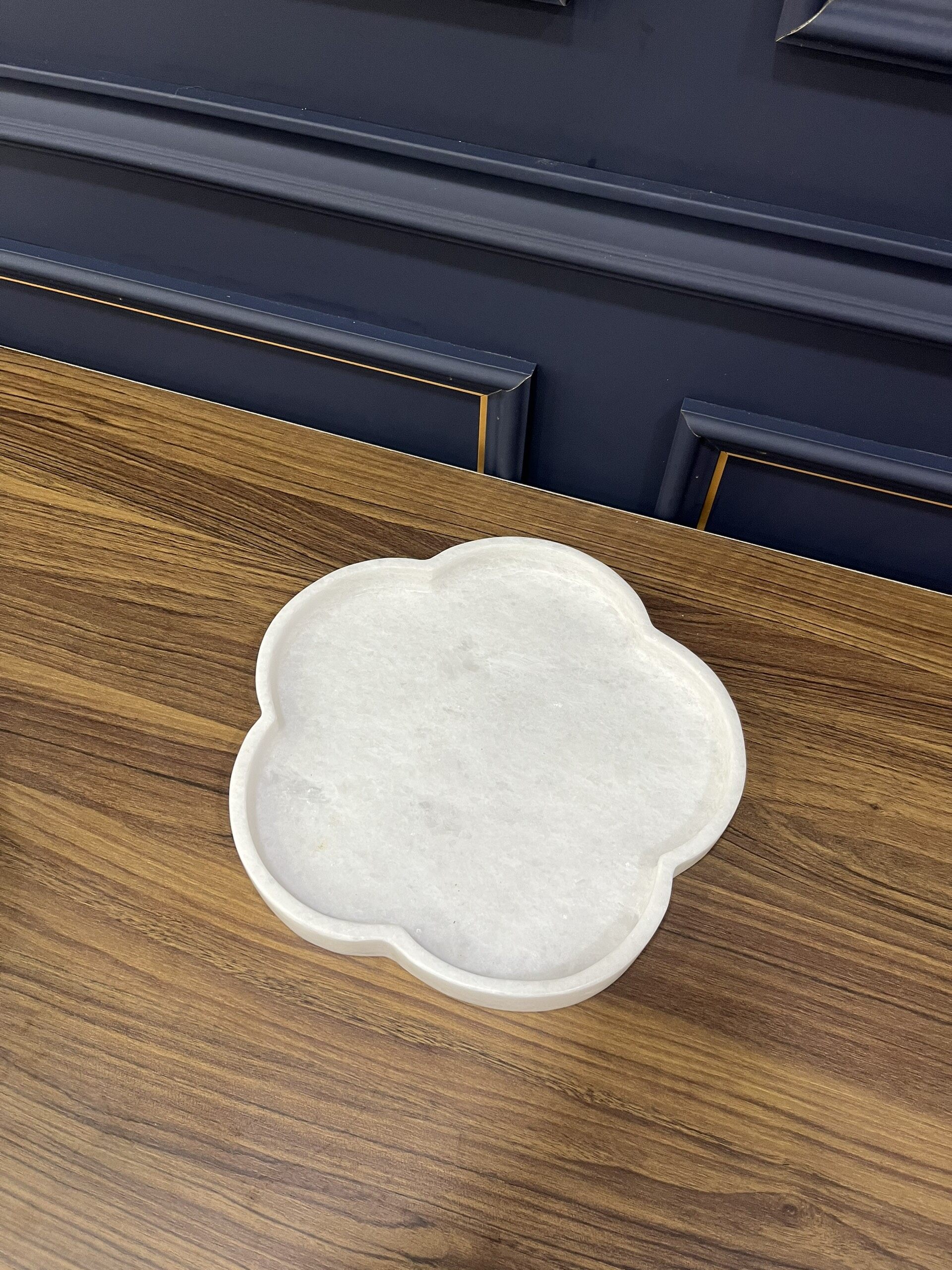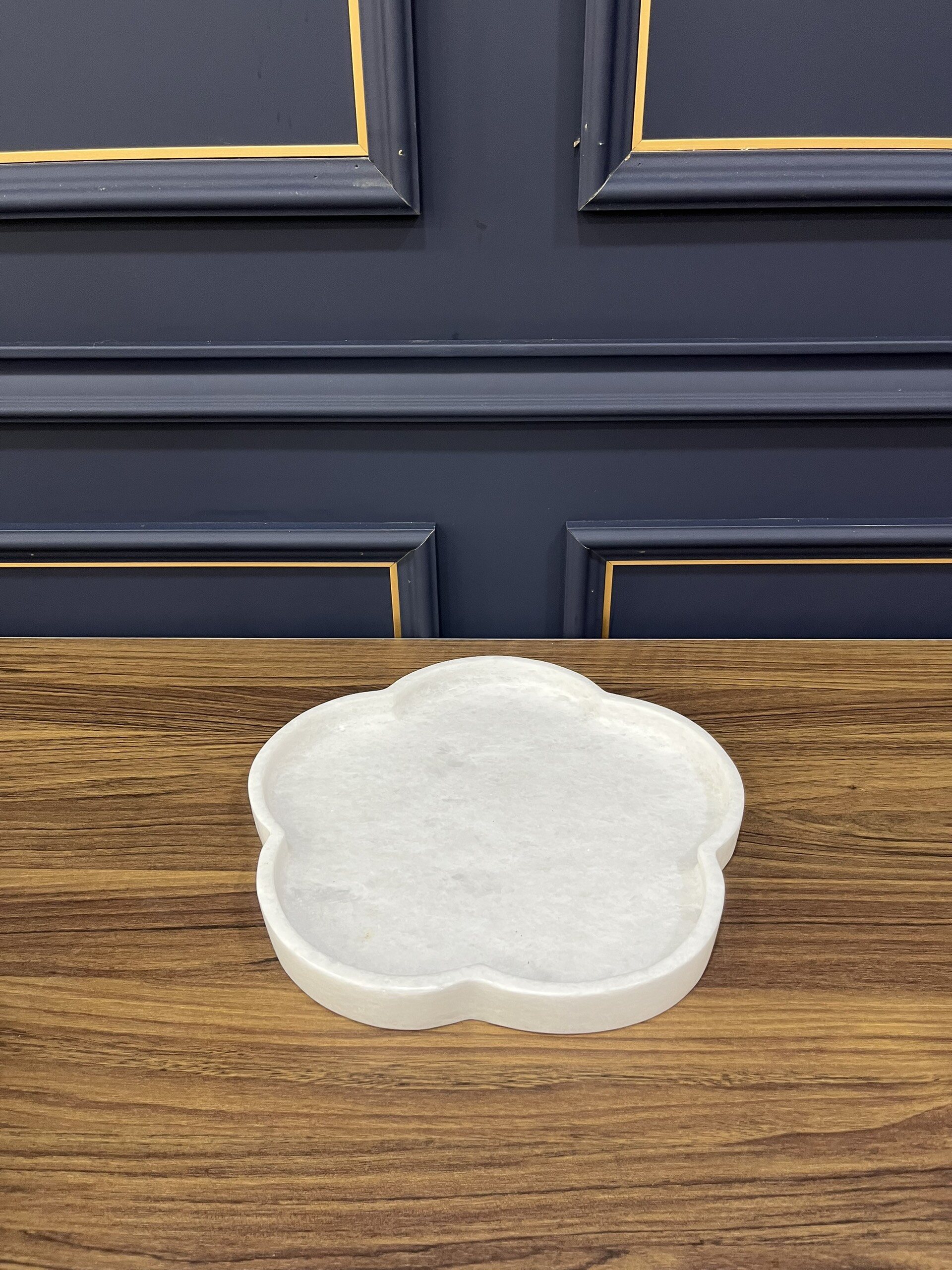REAL MARBLE - FIVE PETAL FLOWER TRAY - EXMTR08 - CRYSTAL WHITE