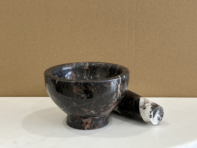 REAL MARBLE - MORTAR & PESTLE - EX03 - BROWN