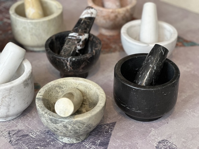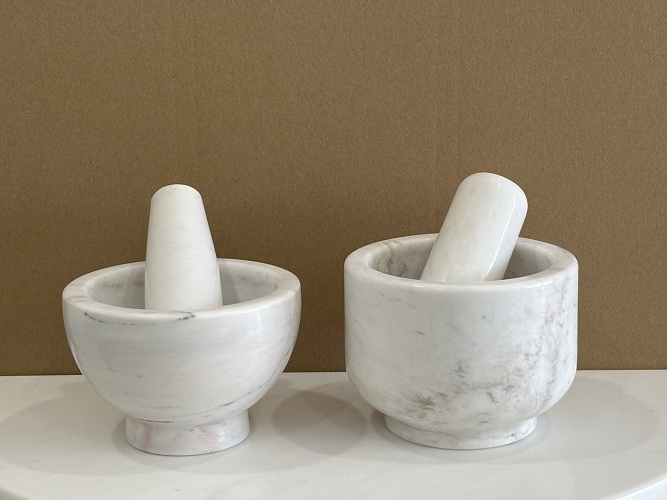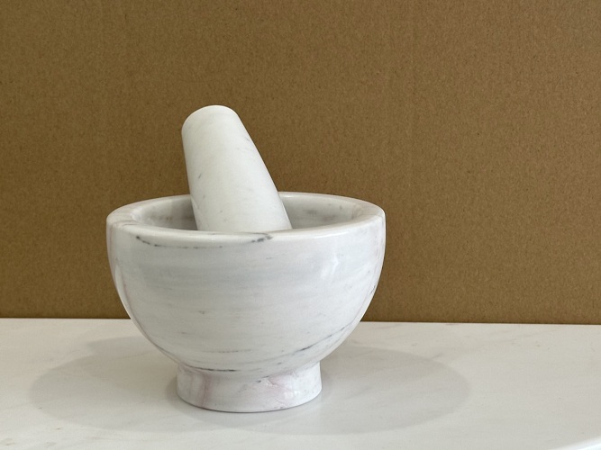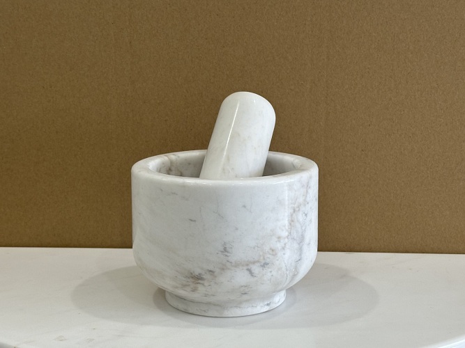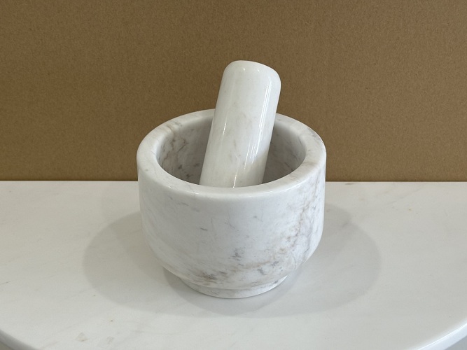 REAL MARBLE - MORTAR & PESTLE - EX03 - MILKY WHITE