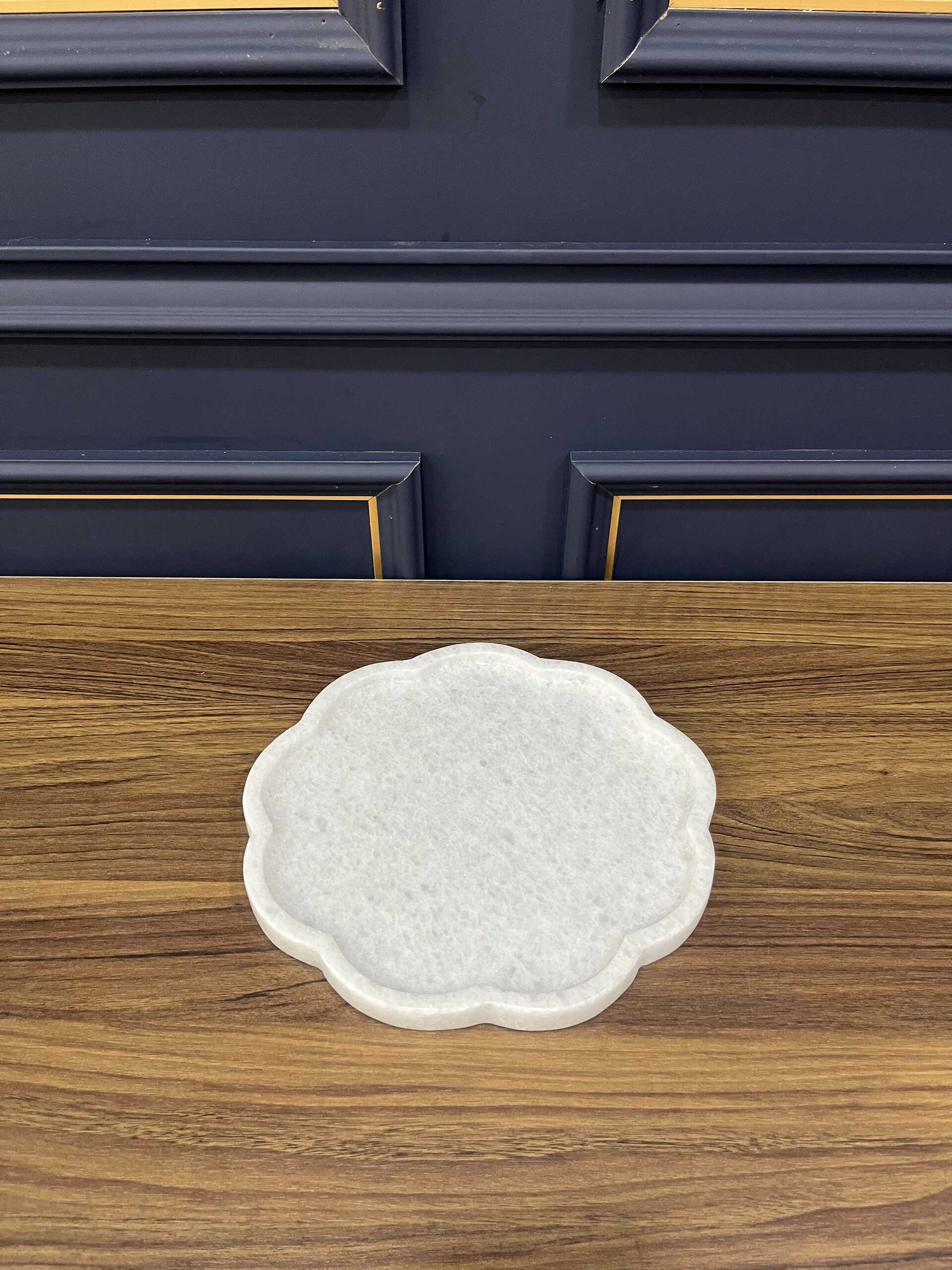 REAL MARBLE - NINE PETAL FLOWER TRAY - EXMTR07 - CRYSTAL WHITE