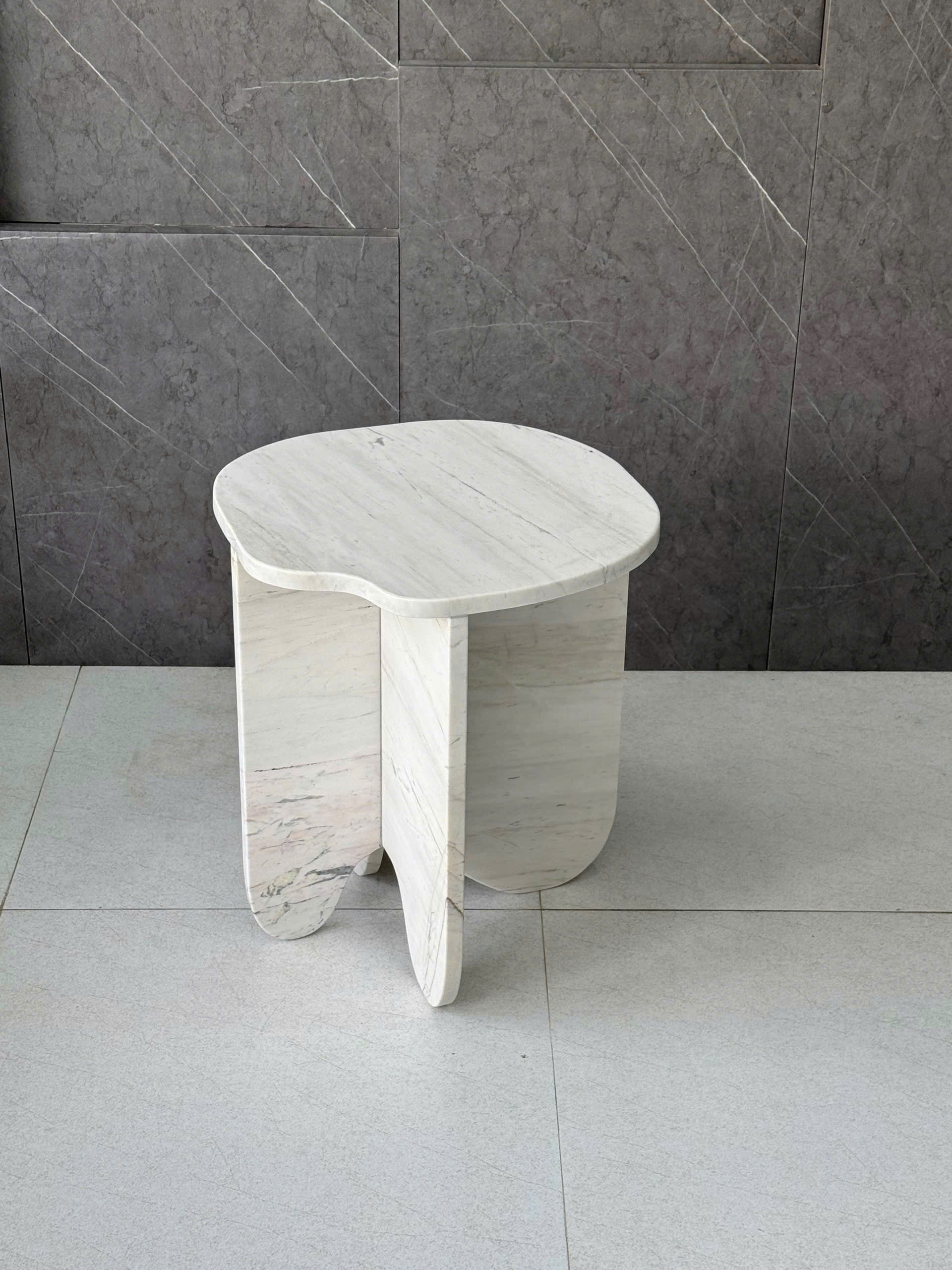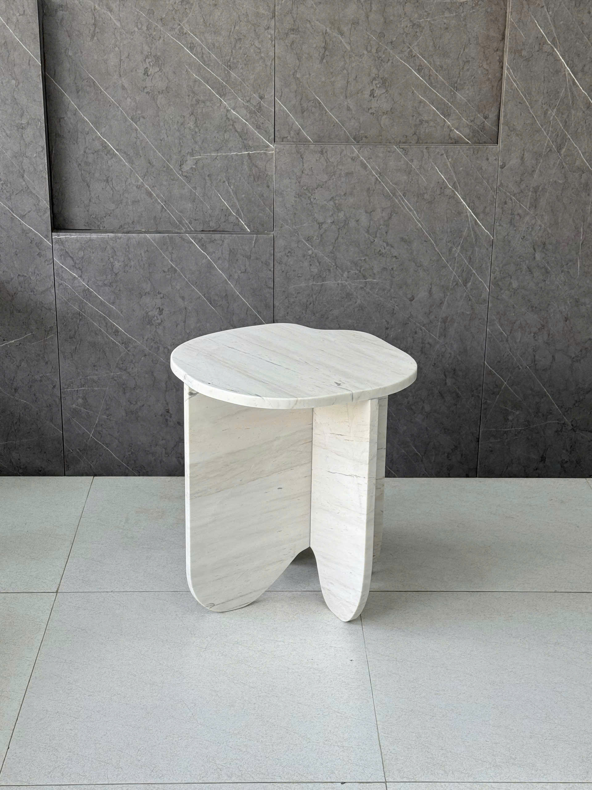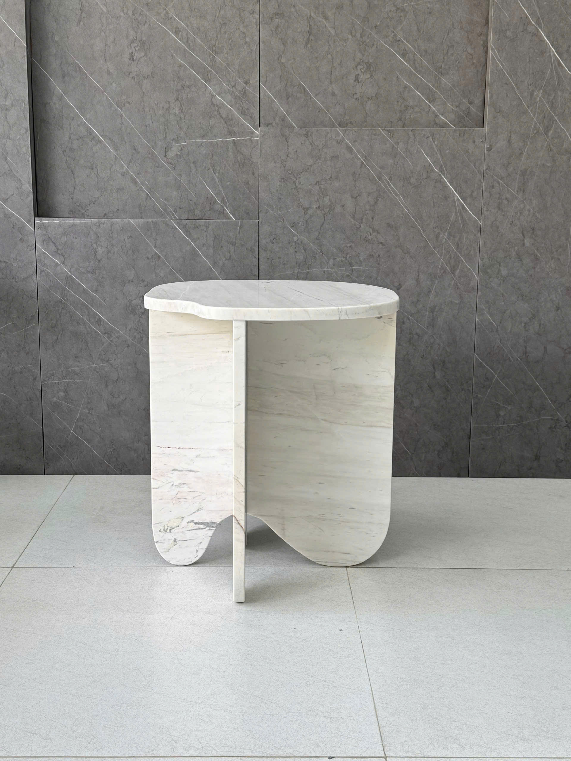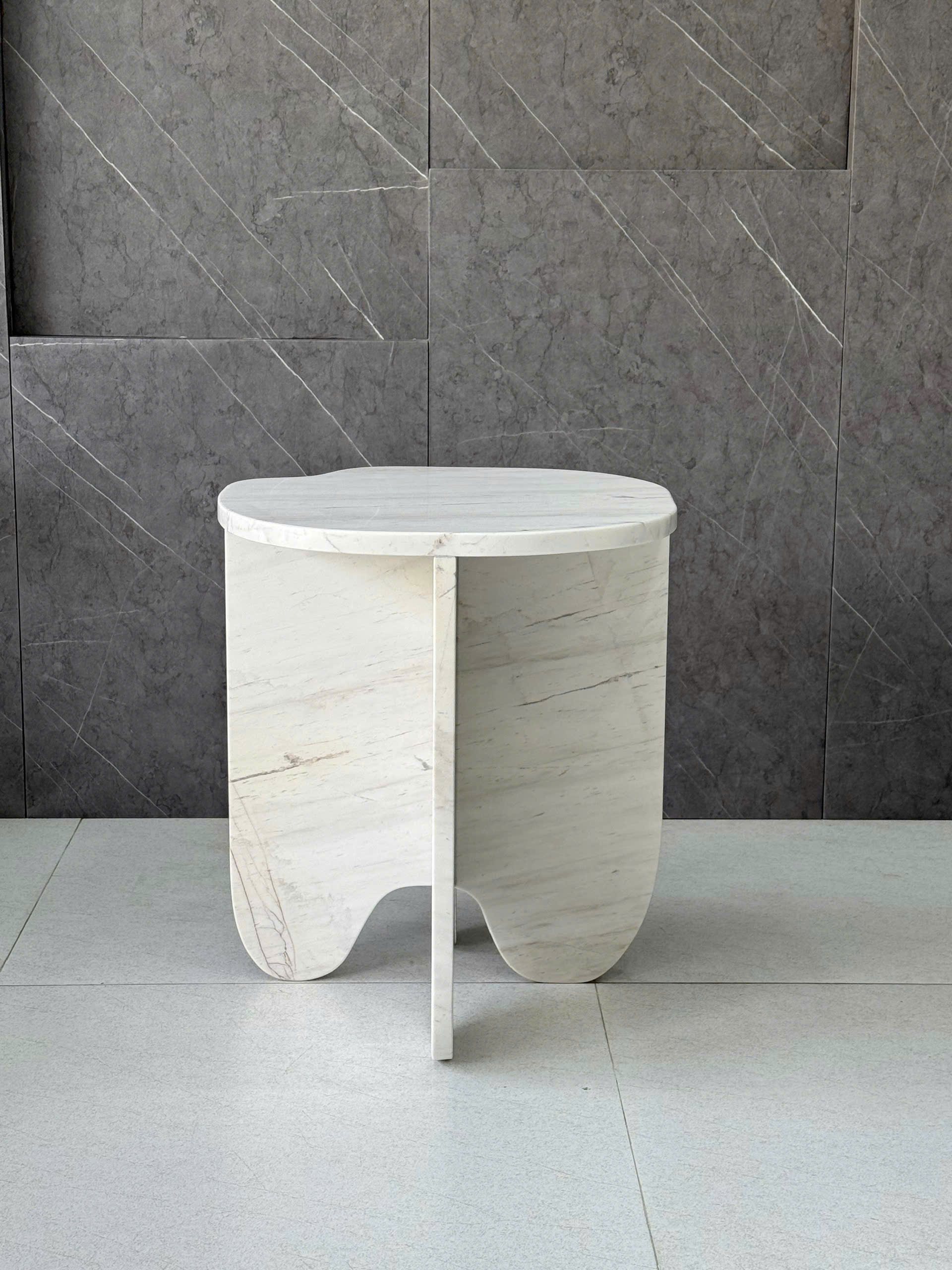 REAL MARBLE - SIDE TABLE - EXHP27 - MILKY WHITE
