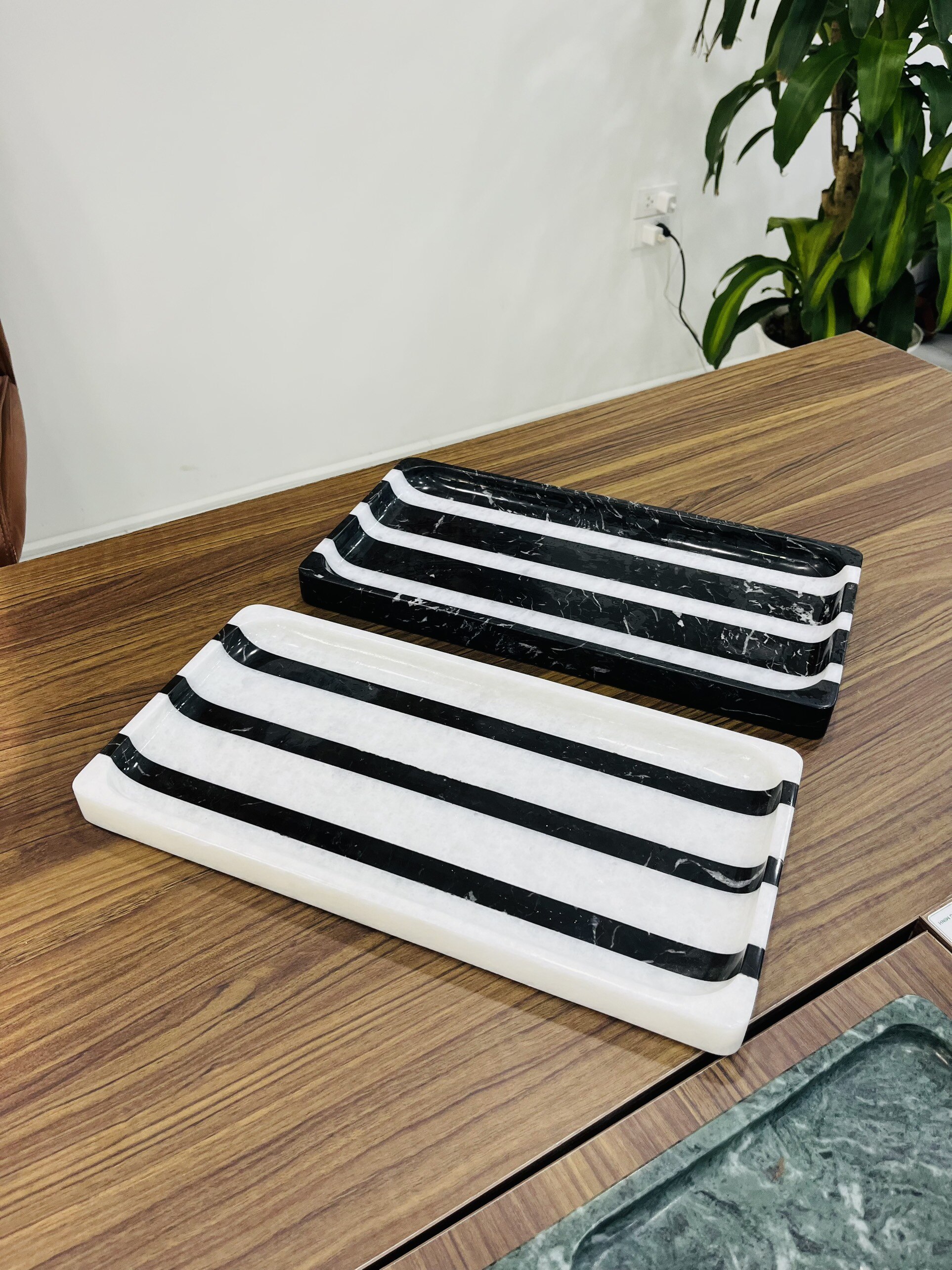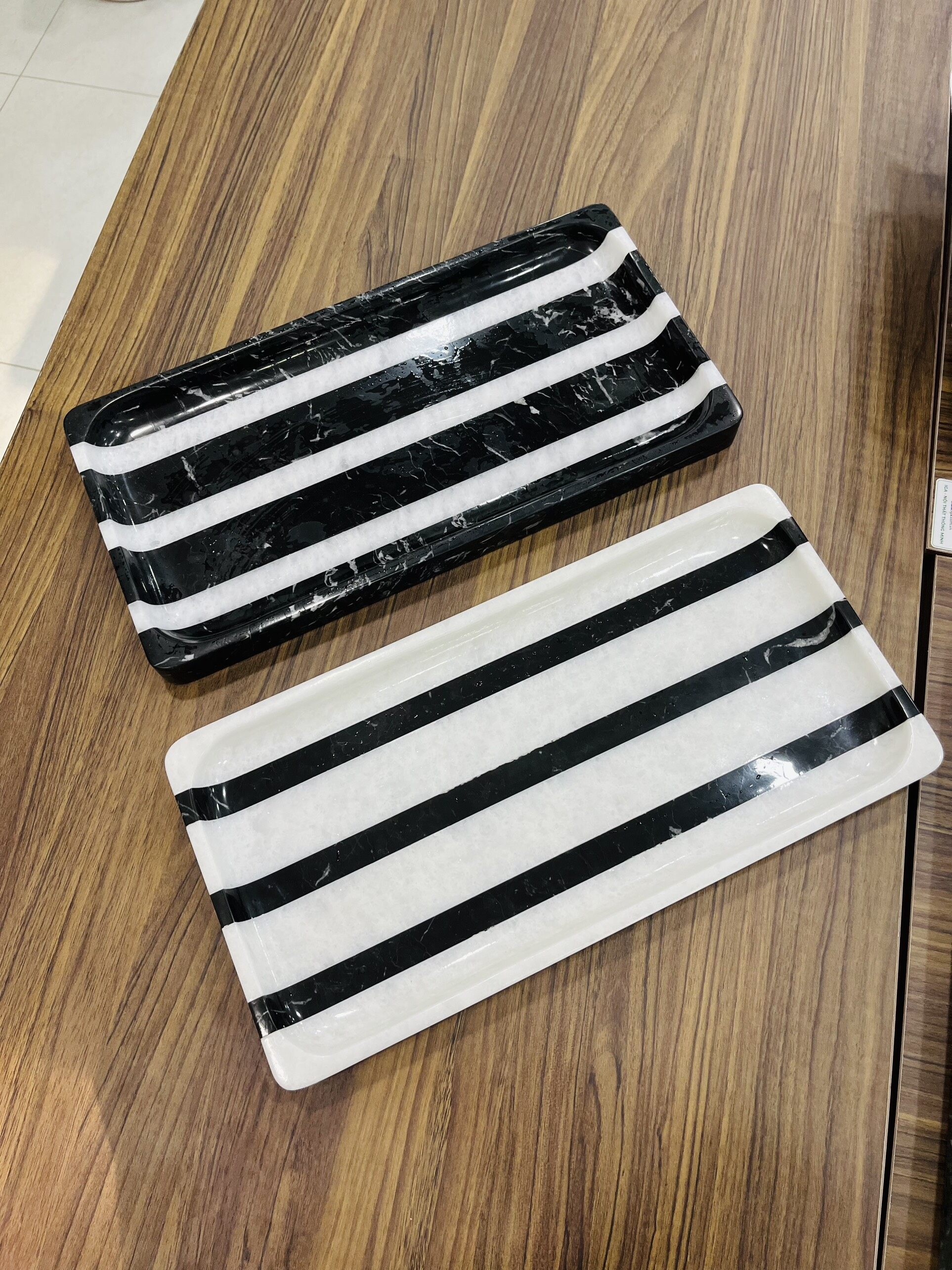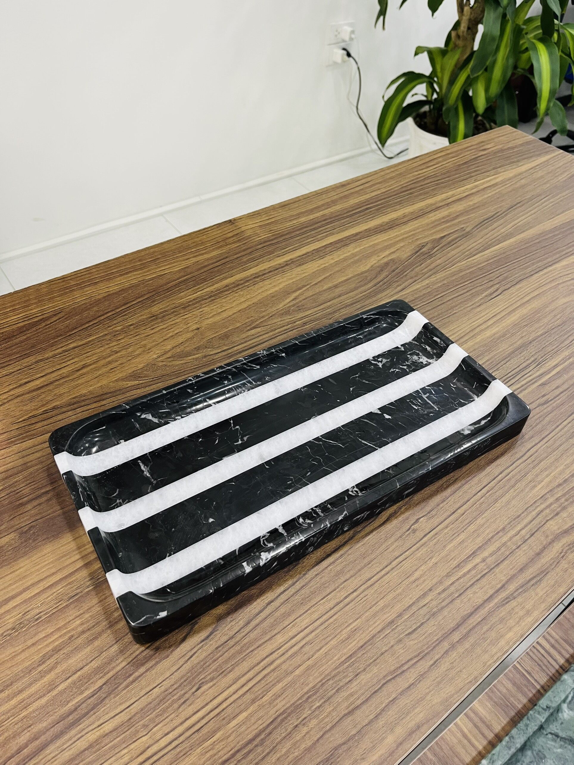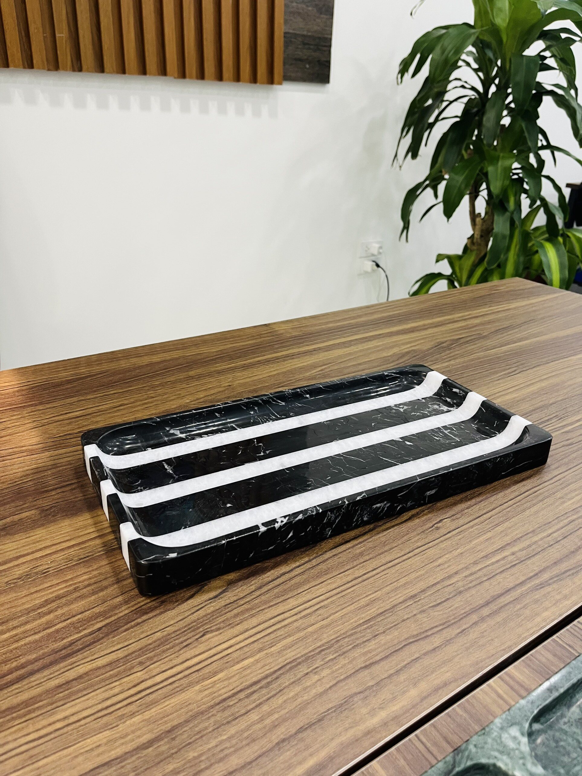 REAL MARBLE - TRAY - EXMTR01 - BLACK AND WHITE