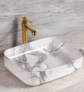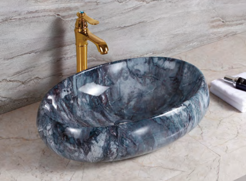 2. Chậu rửa (Lavabo) Chất liệu: Sứ tráng men vân đá - Độc đáo, tiện lợi